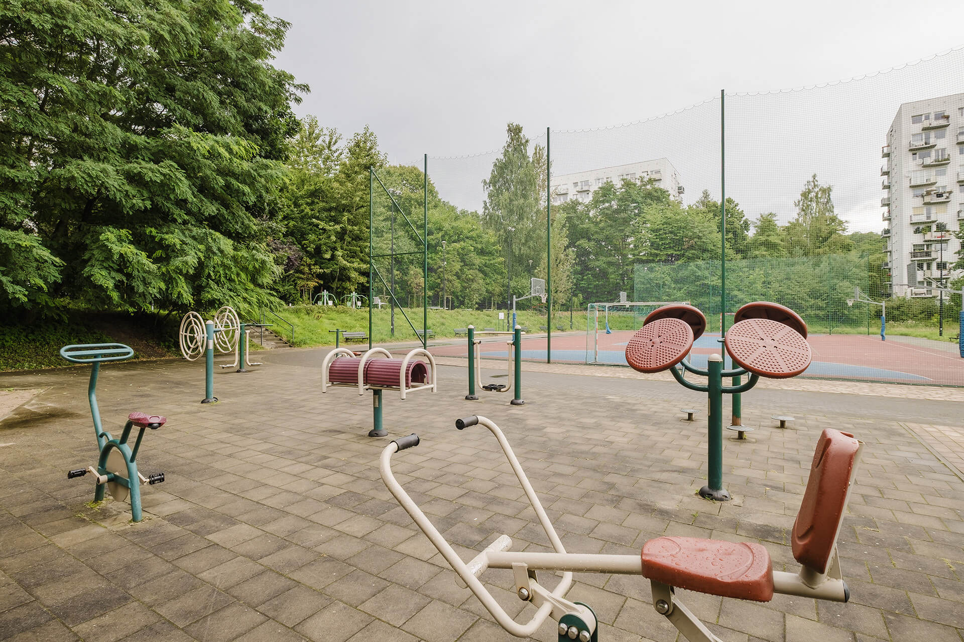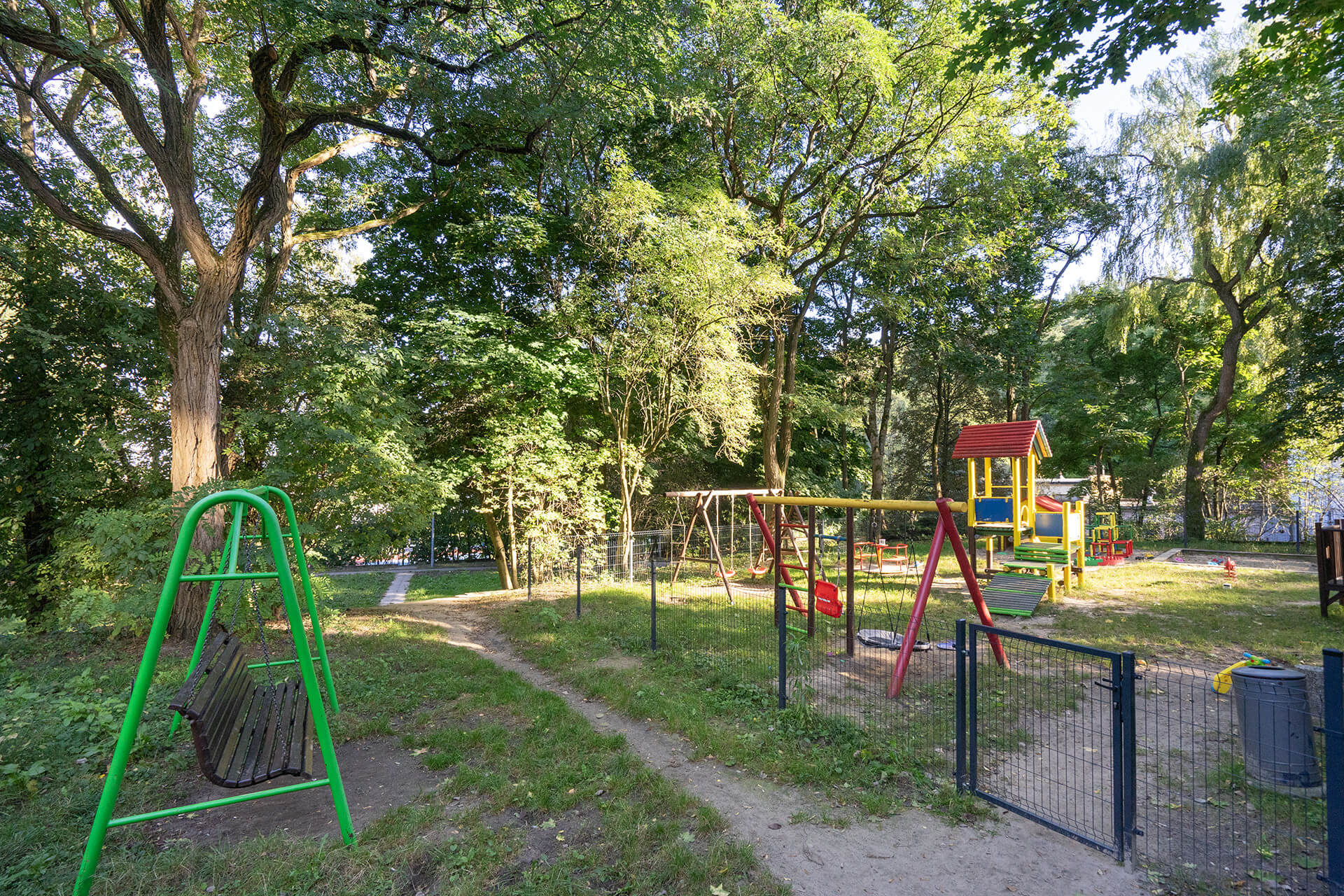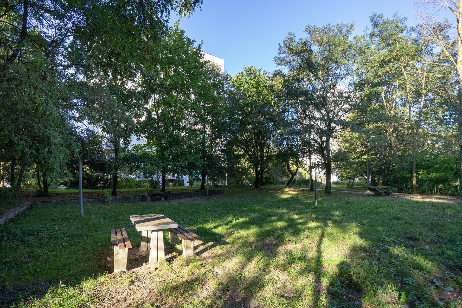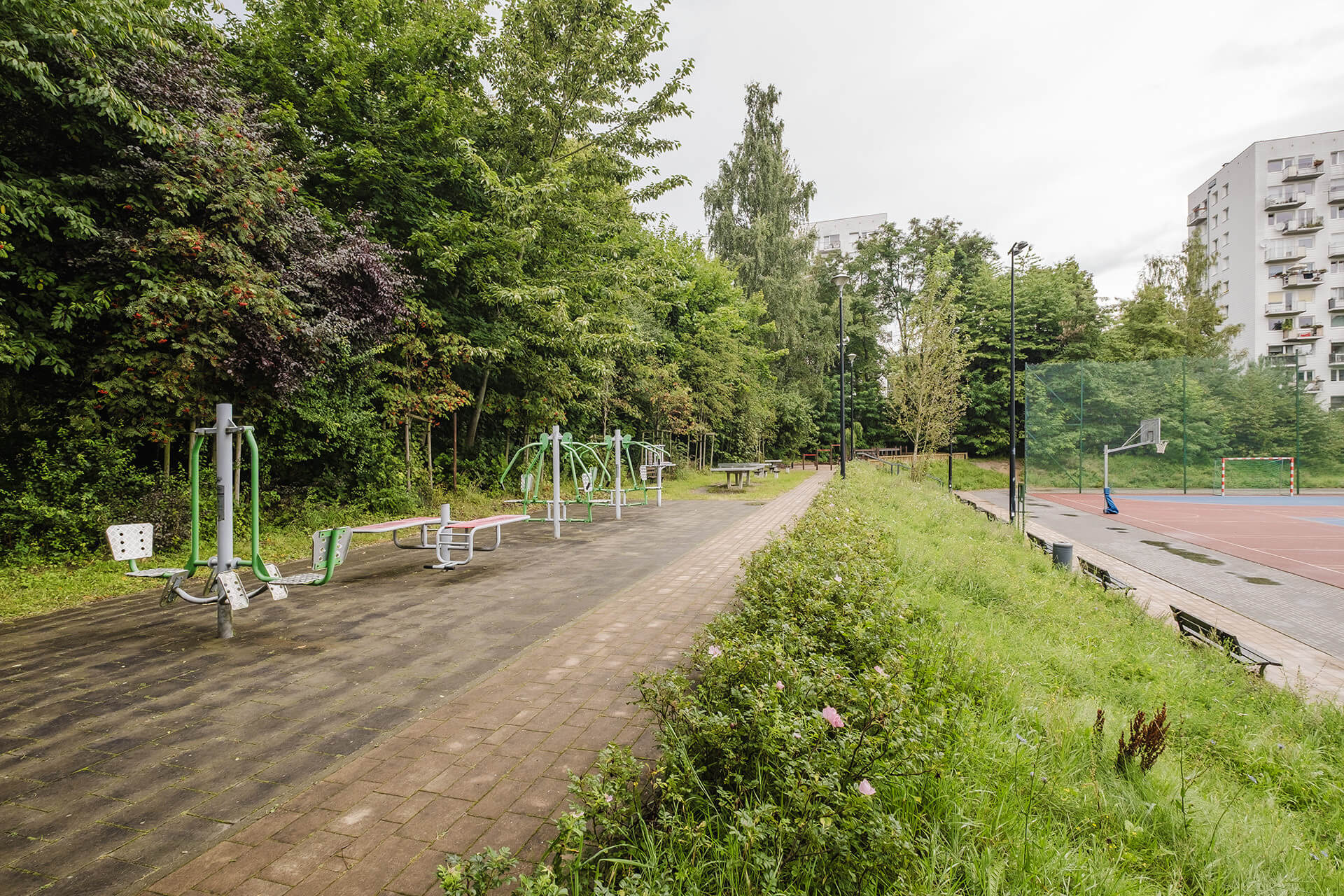 Przed budynkiem znajdziemy sporo zieleni, a także liczne, ogólnodostępne miejsca postojowe dla mieszkańców. Wokół budynku znajduje się plac zabaw, siłownia zewnętrzna, boisko dla mieszkańców.