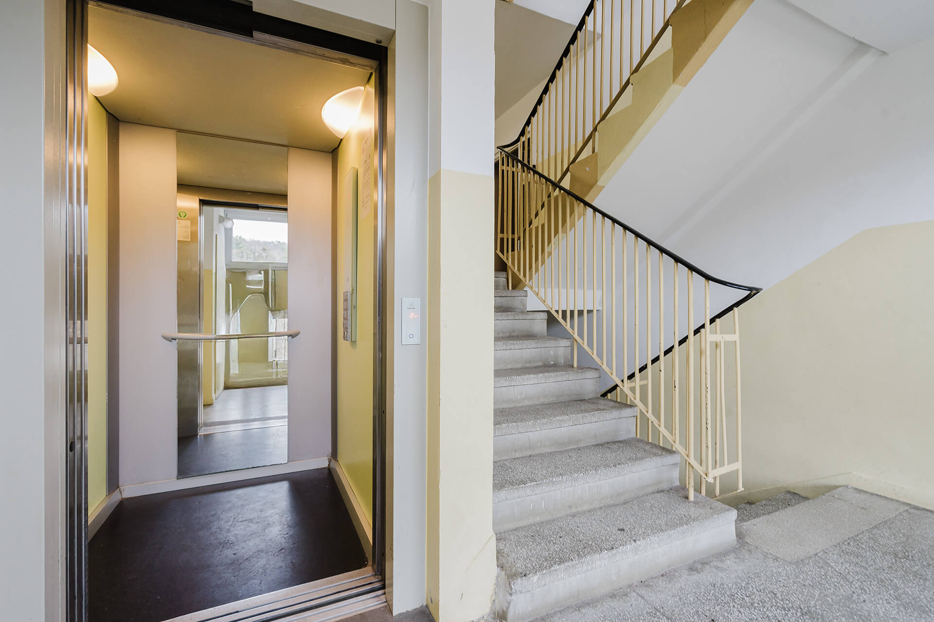 Klatka schodowa została niedawno odświeżona, jest czysta, zadbana, szeroka, wejście zabezpieczone domofonem. Nieruchomością zarządza spółdzielnia.