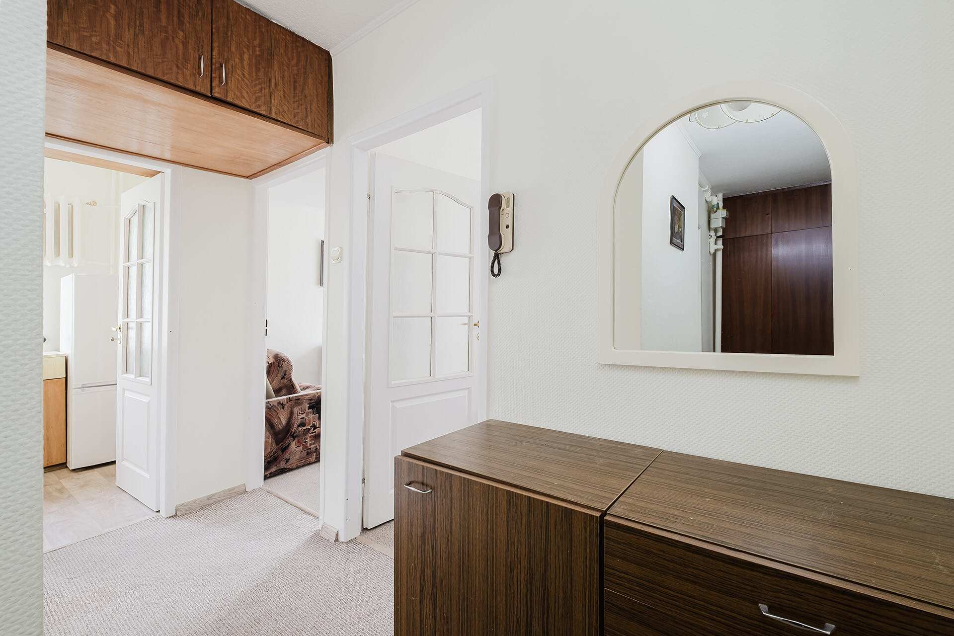 – korytarza z szafą w zabudowie.