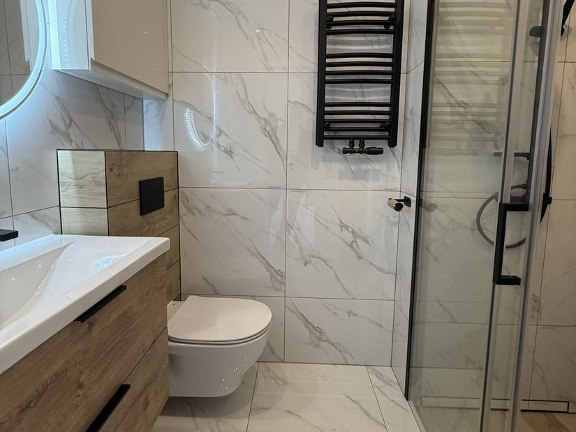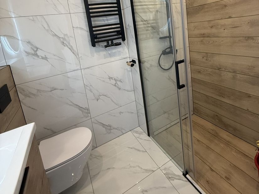 – łazienka z dużym prysznicem