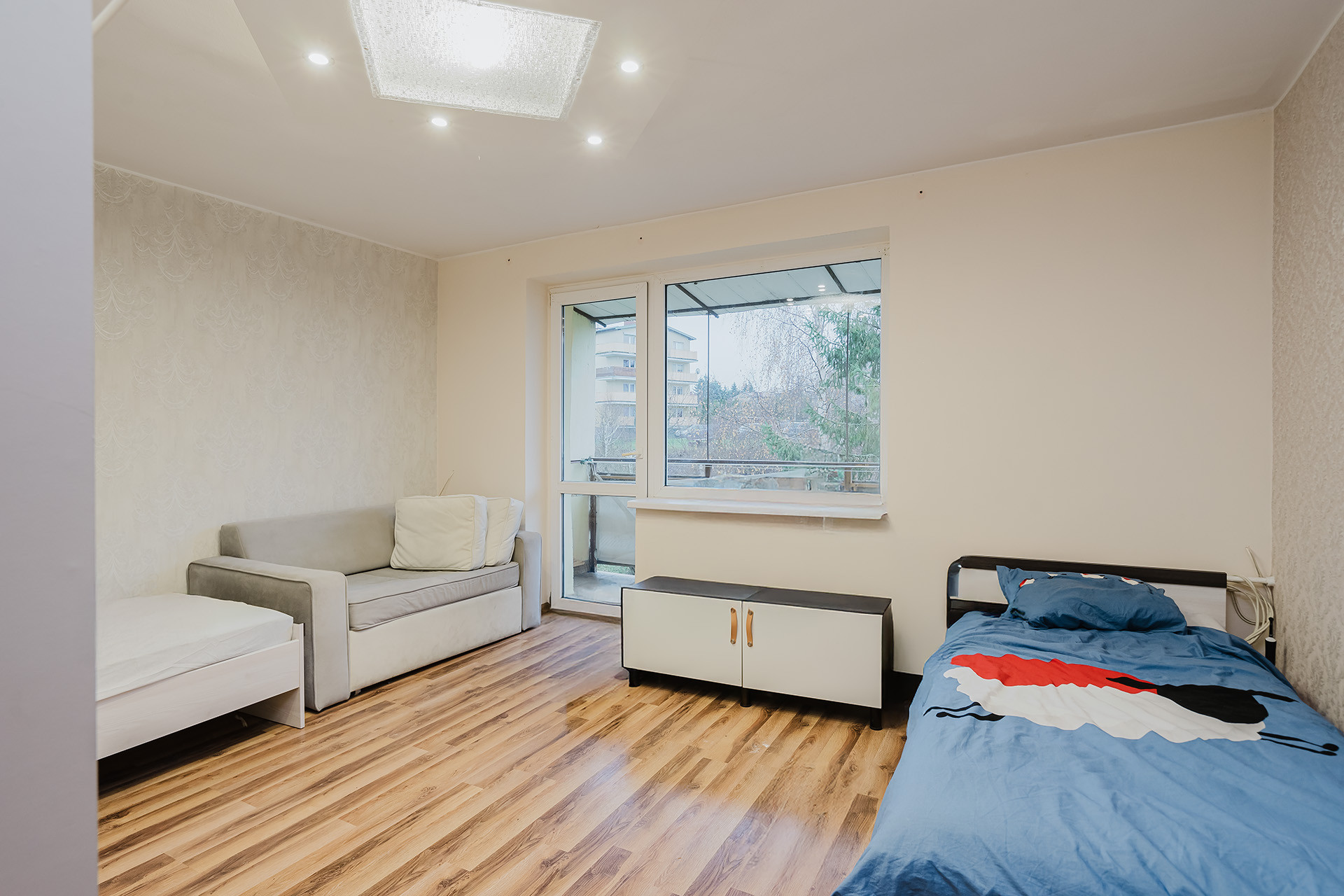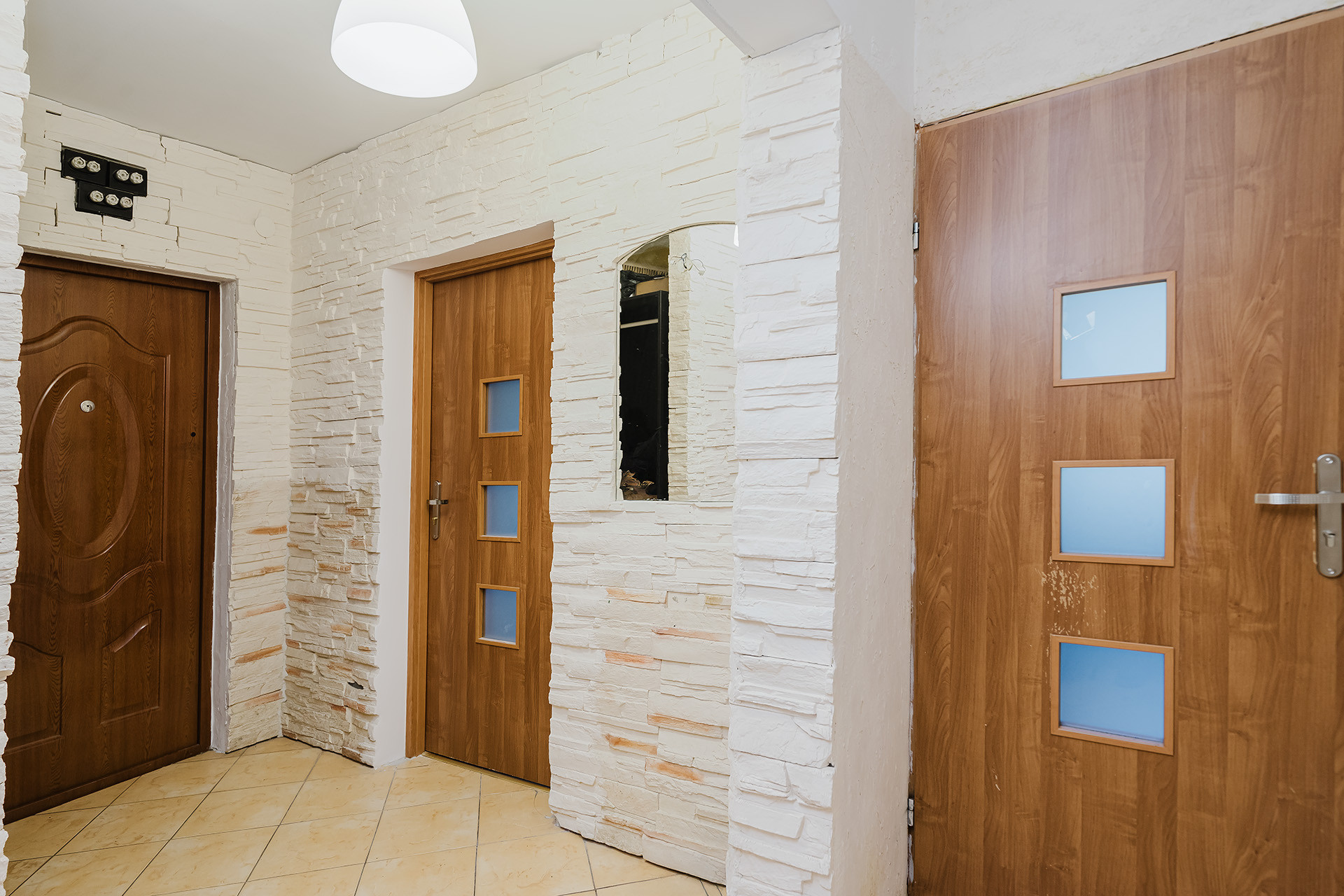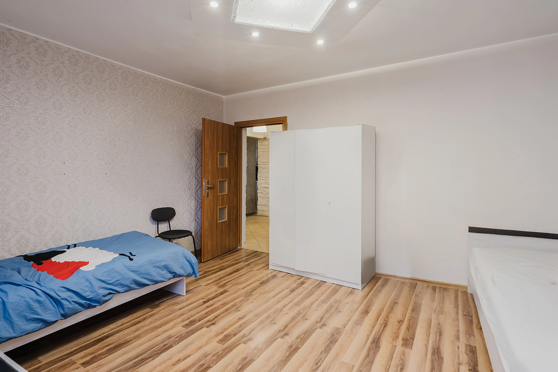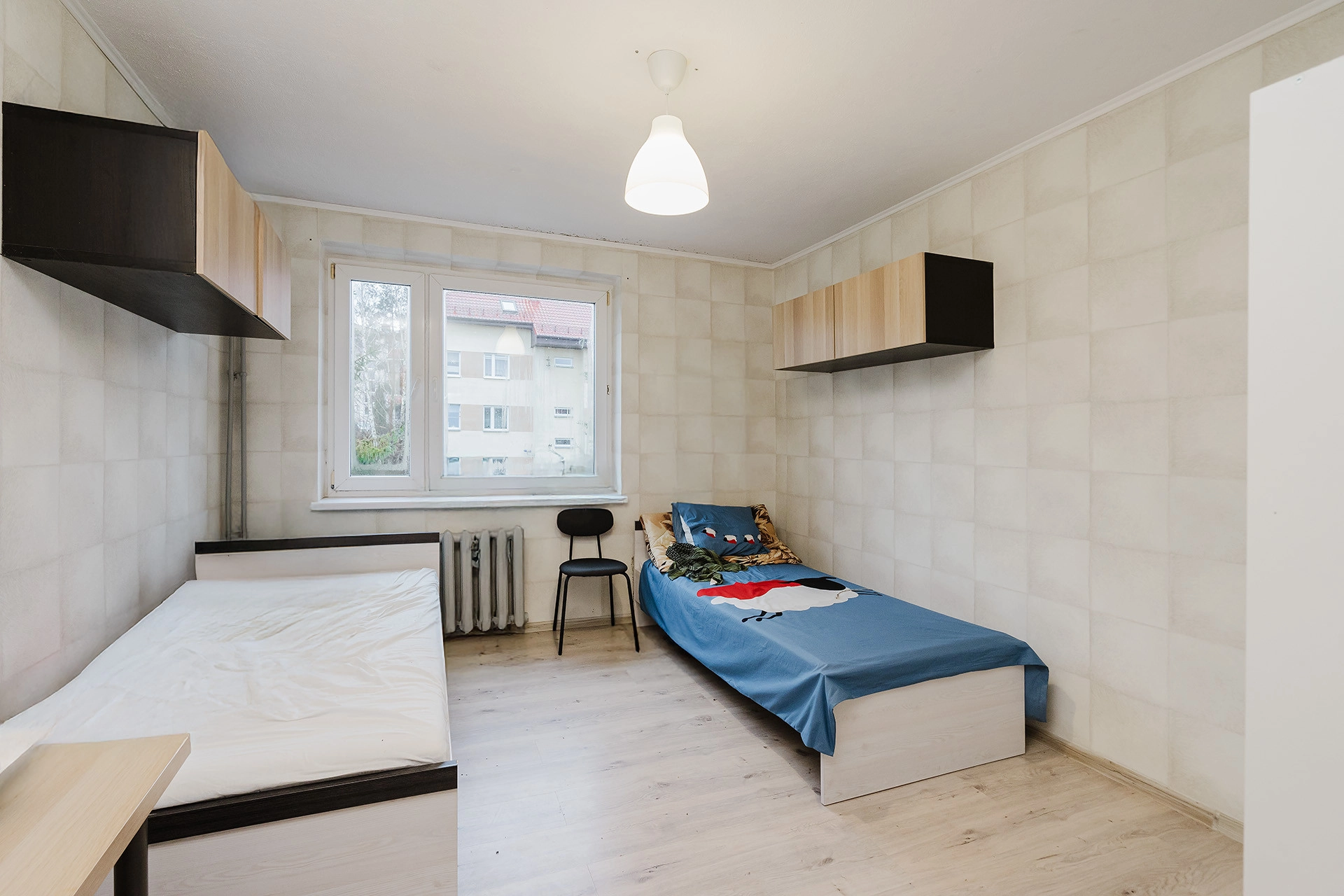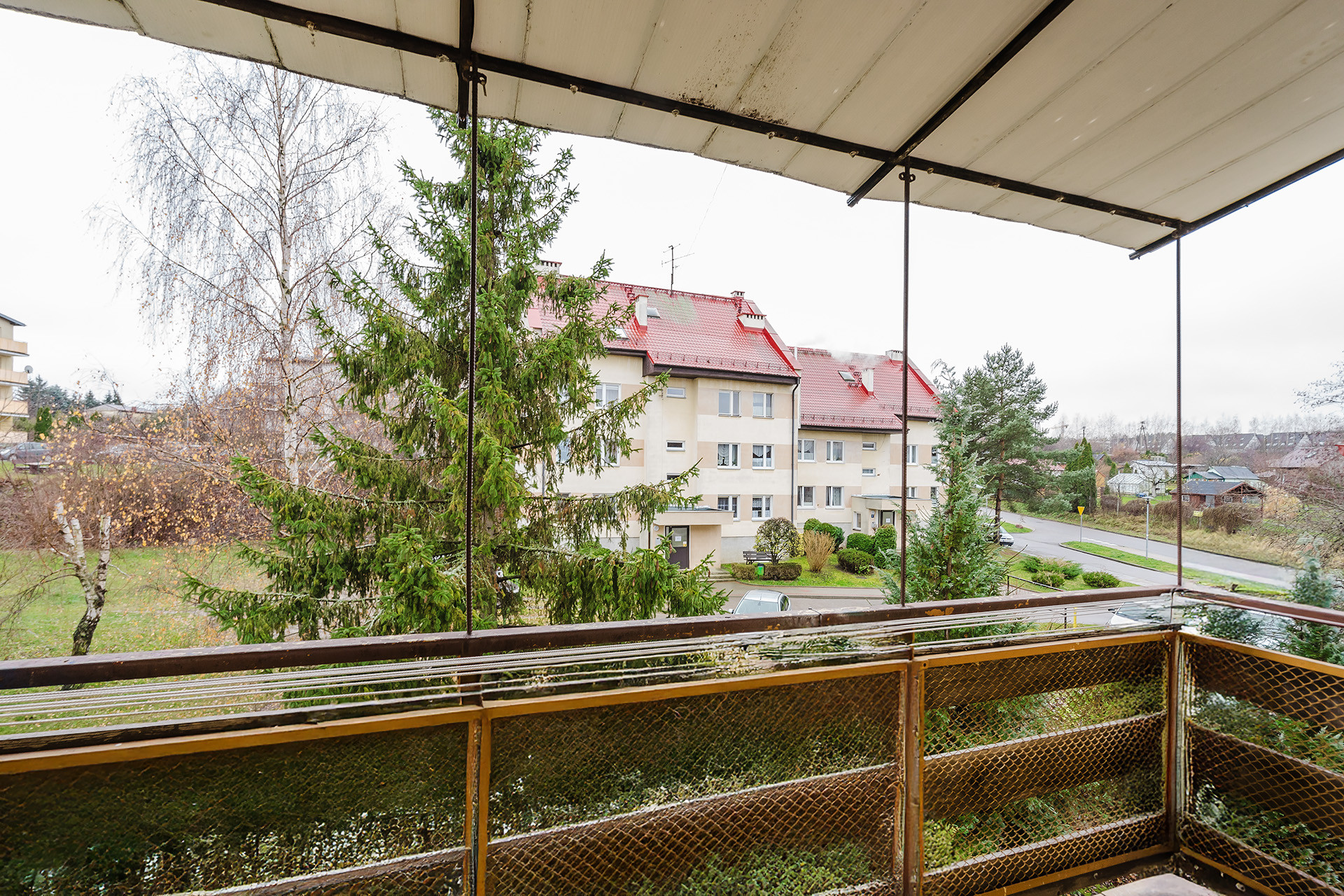 W skład lokalu wchodzą trzy pokoje (jeden z wyjściem na balkon), osobna kuchnia z oknem, łazienka z wc oraz przedpokój.