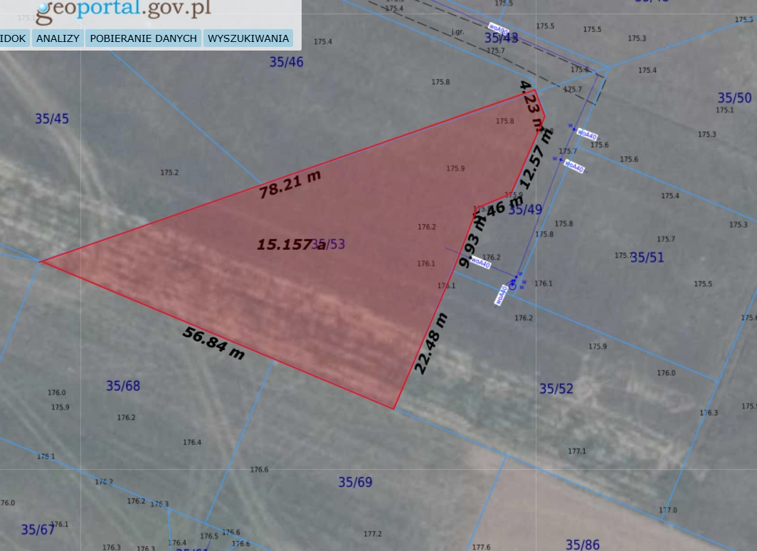 Oferta dotyczy działki 35/53. W ofercie mamy także działkę 35/52 której metraż wynosi 958m2
