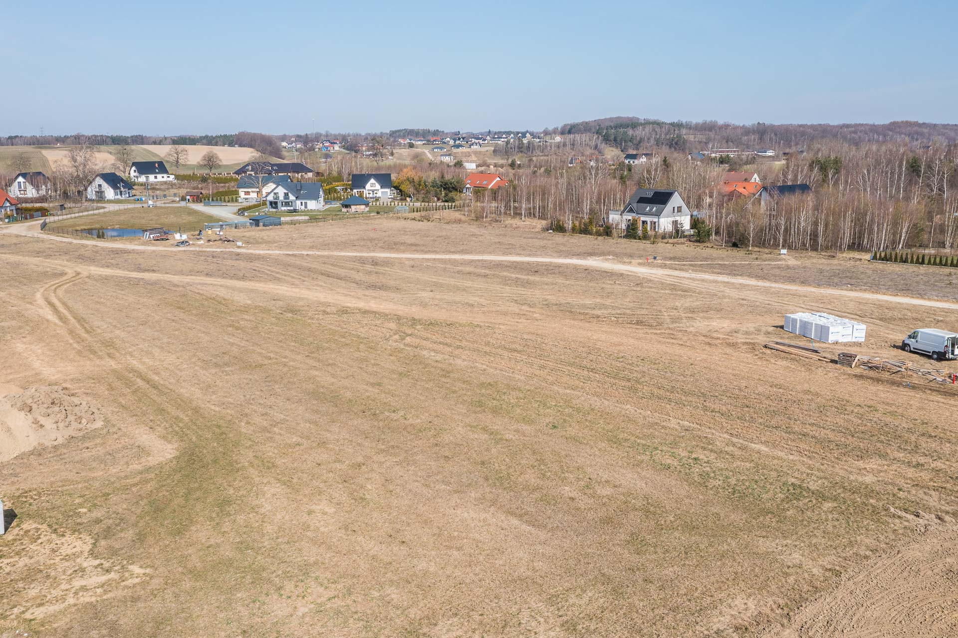Działka budowlana o powierzchni 1520m2. Prąd i gaz znajdują się w drodze 70m od działki a woda jest pociągnięta pod samą działkę. Prowadzi do niej droga polna. Wjazd od wschodu, dzięki czemu ogród będzie bardzo słoneczny.